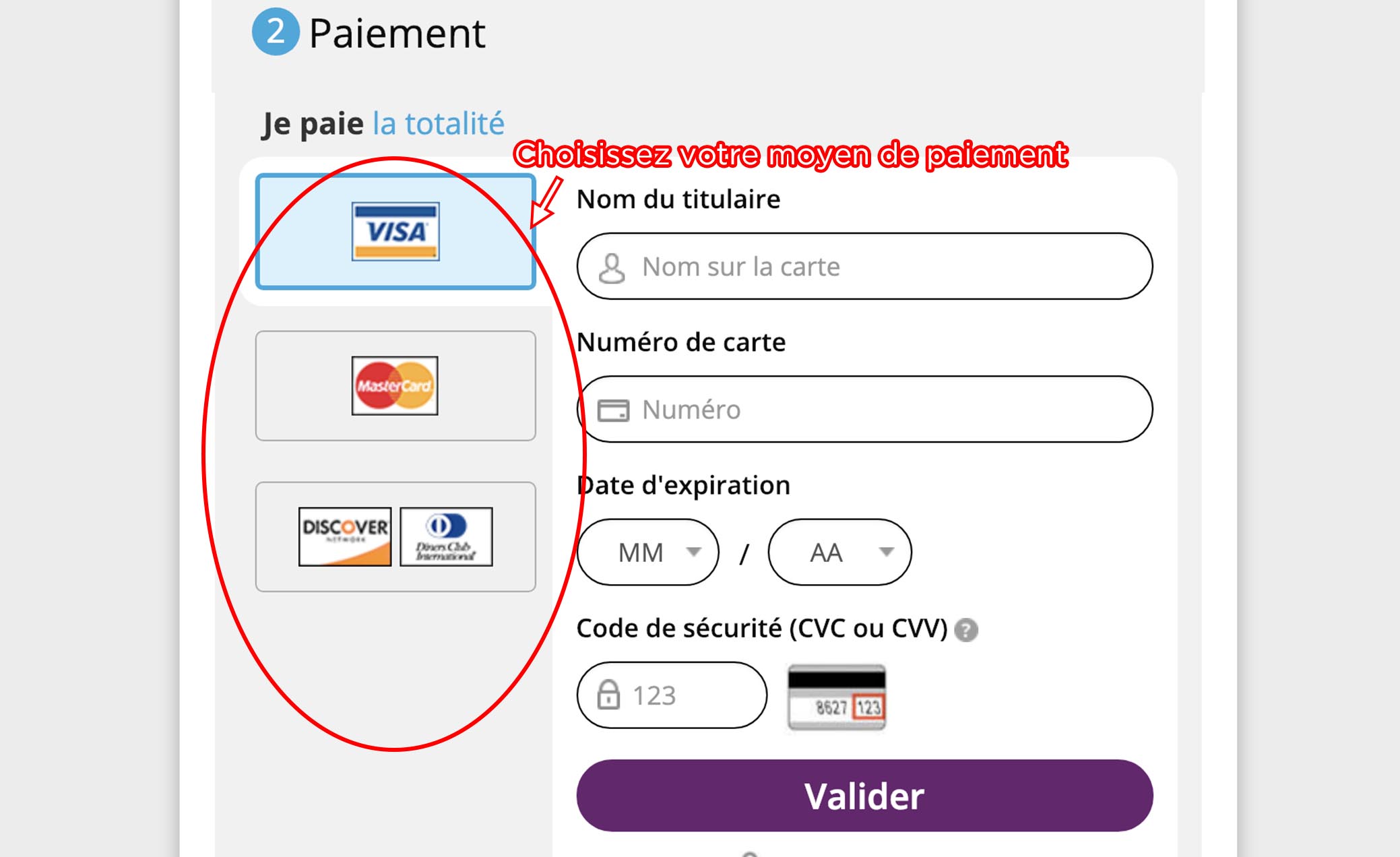 Sélectionnez votre moyen de paiement.