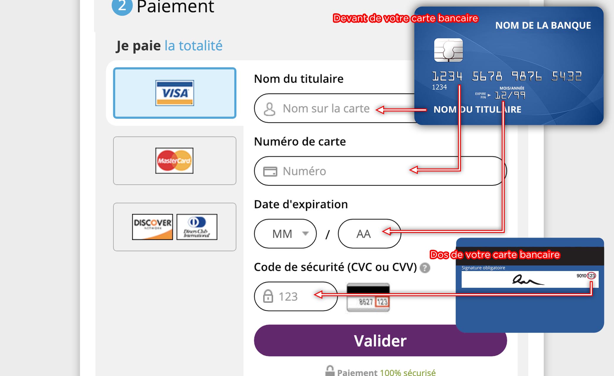 Entrée les informations de votre carte bancaire dans les champs correspondants.