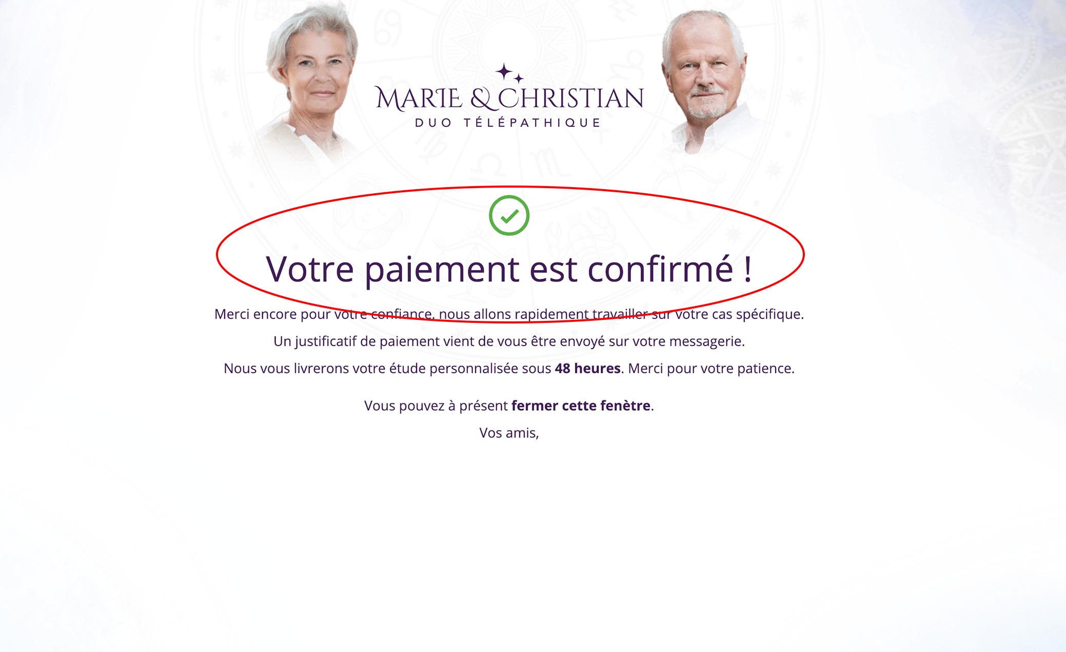 Après la validation de paiement, attendez quelques secondes que le paiement soit traité (1 à 5 secs max), une page de confirmation s’affichera ensuite. Au même moment, une confirmation de paiement vous est envoyée directement dans votre boite e-mail.